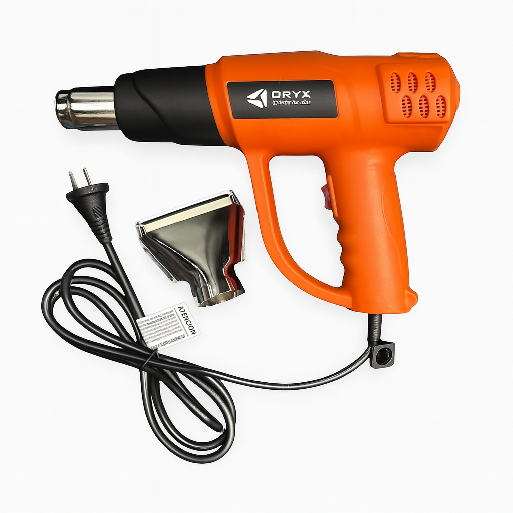 Ideal para trabajos de bricolaje, reparación y uso profesional, la Pistola de Calor ORYX ofrece una potencia de 2000W y un rango de temperatura ajustable de 60°C a 600°C, brindando versatilidad para múltiples aplicaciones como: quitar pintura, moldear plásticos, encoger termocontraíbles, soldar, secar superficies, entre otros.